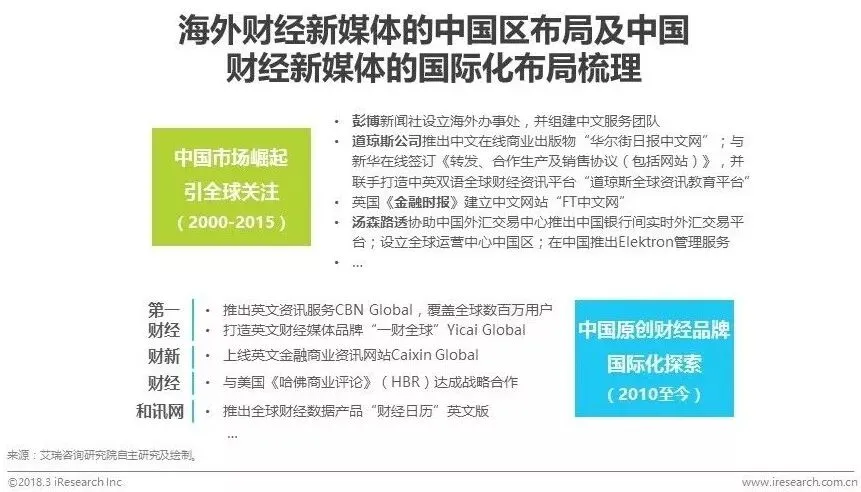 伴随着经济全球化程度加深,中国对外开放范围、领域、层次不断拓展,社会活力释放,获得了国际社会的广泛关注。众多老牌海外财经媒体纷纷通过自建或合作形式推出中文财经网站及服务,持续完善中国区布局。而另一方面,历经国内外众多重大财经事件报道,并在大数据、人工智能、直播、短视频等风口下不断革新技术能力的国内原创财经媒体平台,内容生产能力逐步提升,在为中国用户提供高品质财经内容之余,开始通过组建国际化服务团队、推出英文网站/APP、与各国顶尖媒体集团建立合作等方式开拓国际市场;同时,也通过旗下的全球新闻采编网络,为国内用户带来全球化视野的财经资讯及市场数据报道。