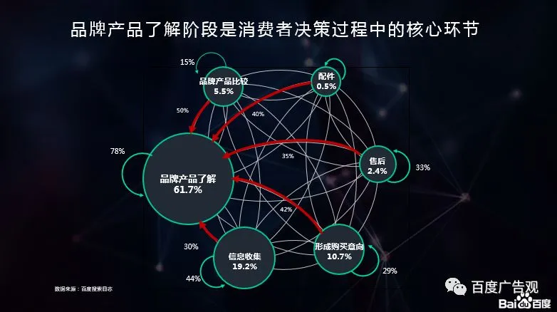 每个消费者在形成购买行为之前都会有相关的决策路径在,百度基于消费者一定时间内在百度搜索相关行业的历史纪录,通过一些操作性定义,能够识别并有效的分析消费者决策全过程。