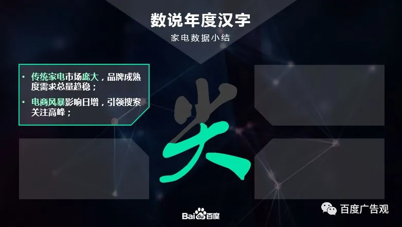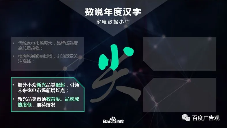 那么回顾家电行业在2017年的行业走势和人群特点,我们也给家电行业推出了一个年度汉字——尖。