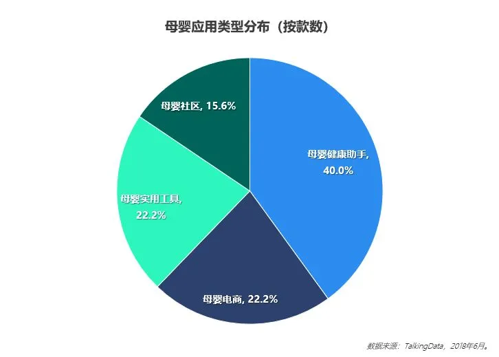 2018年6月,移动母婴主流应用中,母婴健康助手应用的款数占比40.0%,高于母婴电商、母婴实用工具和母婴社区,健康成为母婴人群优先关心的领域。