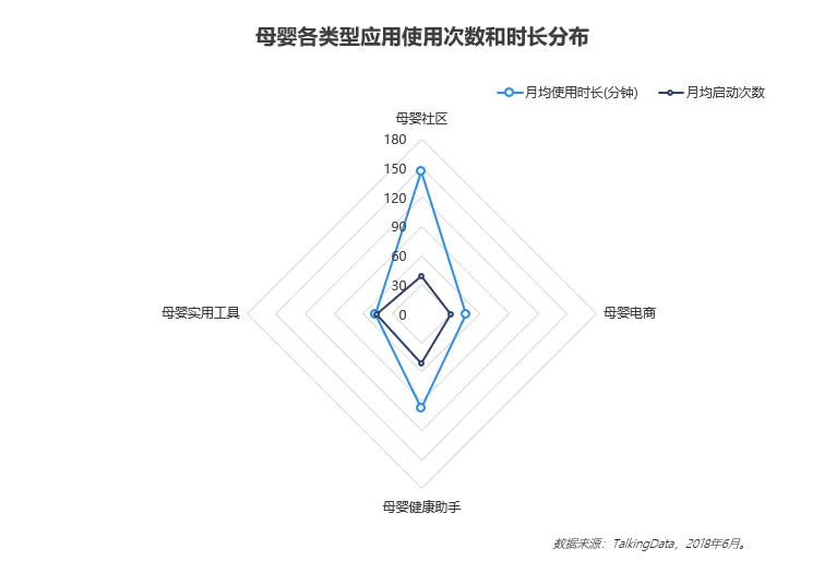 2018年6月,移动母婴主要细分领域中,母婴社区的月均使用时长接近150分钟,母婴人群相对偏好利用社区平台学习、分享相关孕育知识。