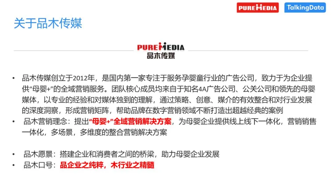 这份报告全面深度剖析了母婴行业的发展现状及趋势,为品木传媒提出的“母婴+”全域营销解决方案保驾护航,同时也为消费升级下的新母婴时代提供精准的人群数据及强大的平台支撑。