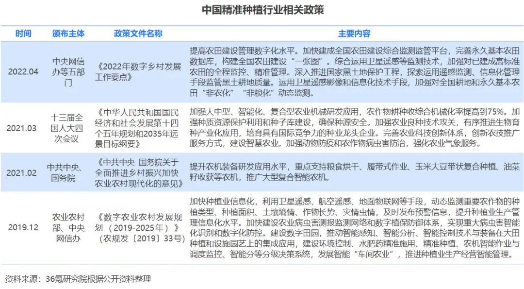 政策环境:系列政策推动种植业生产管理信息化、农机装备智能化