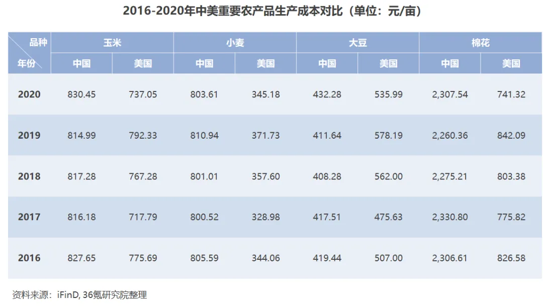 供给端:我国重点农产品生产成本较高,精准种植助力降本增效
