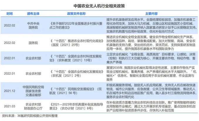 近年来,我国颁布系列政策鼓励农业无人机发展。一方面,着力推动农业无人机研发和制造水平提升。2022年2月,中共中央、国务院印发《关于做好2022年全面推进乡村振兴重点工作的意见》,提出应提升农机装备研发应用水平,将高端智能机械研发制造纳入国家重点研发计划并予以长期稳定支持。另一方面,为农业无人机购置提供补贴。2017年起,我国实施了农机购置补贴引导植保无人机规范应用试点工作,2020年广西、广东等20个试点省份共申请中央财政补助资金2.23亿元,补贴购置植保无人九千余台。《2021-2023年农机购置补贴实施指导意见》提出,我国将全面开展植保无人驾驶航空器购置补贴工作,进一步强化财政支持力度。