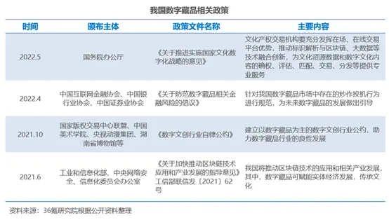 区块链作为支撑数字藏品发展的底层技术,已被写入十四五规划。2021年,工信部和网信办发布政策,推动区块链与数字藏品等领域的融合发展。同时,业内相关协会与企业联合发布行业自律条款,推动行业健康发展。