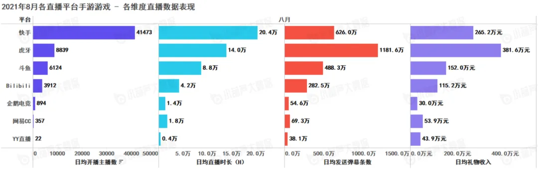 手游篇:虎牙的手游主播整体上质量更高,快手手游日均开播主播数远超其他平台