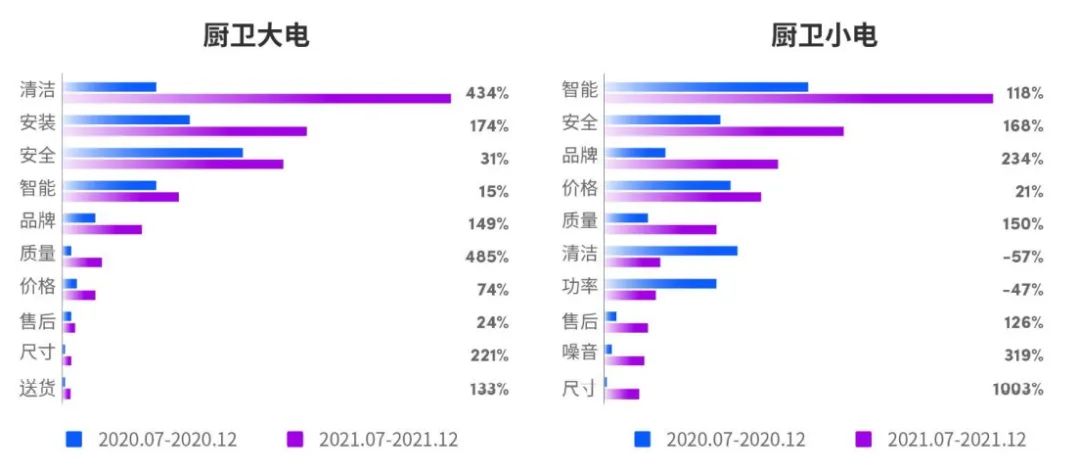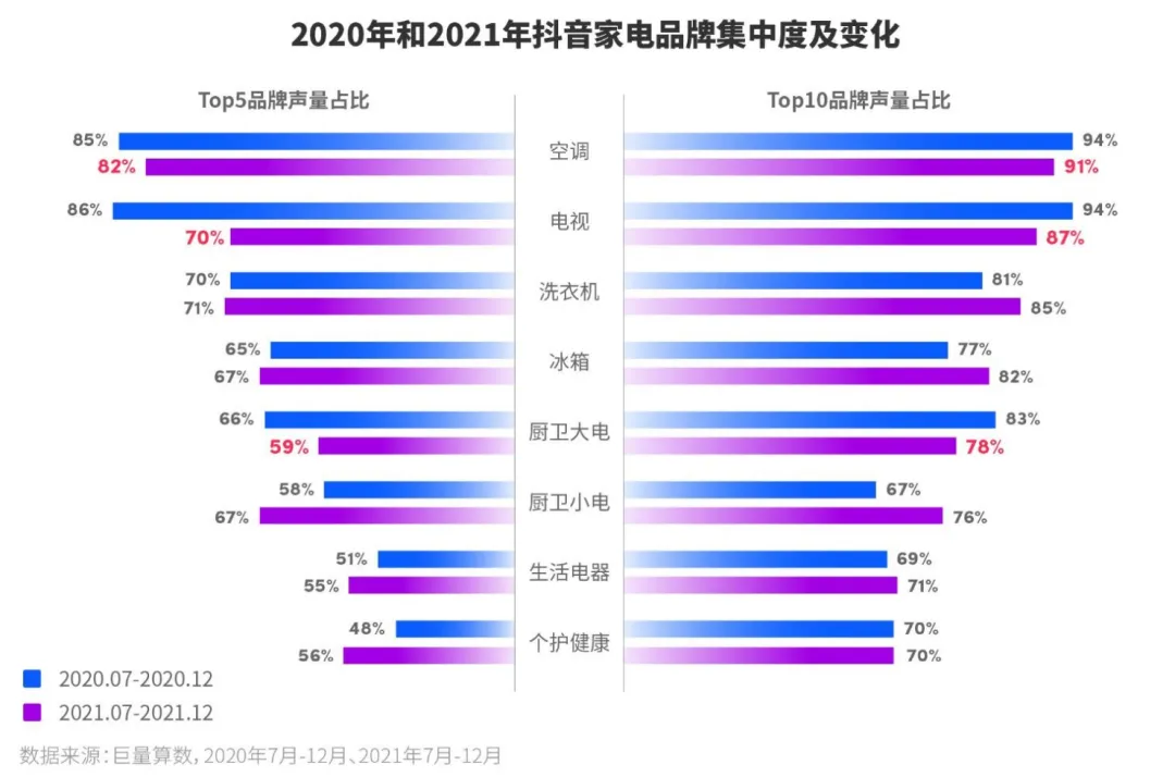 品牌更替最明显的是厨卫小电和个护健康。归因于新品类、新品牌不断出现,Top5品牌两年间持续更迭,但是具备多产品线的品牌表现出一定优势。