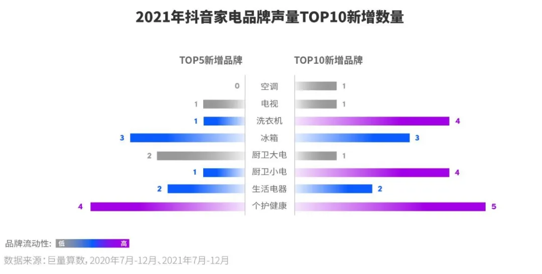 大家电的品牌格局更稳定,但洗衣机和烘干机品类的品牌流动则超出预期,主要原因是洗衣机小型化、专用化需求带动品牌活力增长。