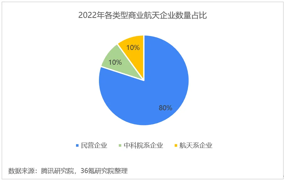 民营企业成为商业航天重要参与者。我国商业航天参与者主要分为民营企业、中国科学院系企业和航天系企业,航天系企业又可分为航天科工系和航天科技系。商业航天具有投资大、周期长、风险高的特点,国有资本在早期起到引领带动作用。2015年后,随着政策红利不断释放,民营商业航天企业相继成立,资本市场对商业航天的关注度显著提升,民营企业逐渐成为商业航天领域的中坚力量。根据腾讯研究院数据,目前商业航天企业中,民营企业数量占比达80%,中科院系企业和航天系企业平分秋色。