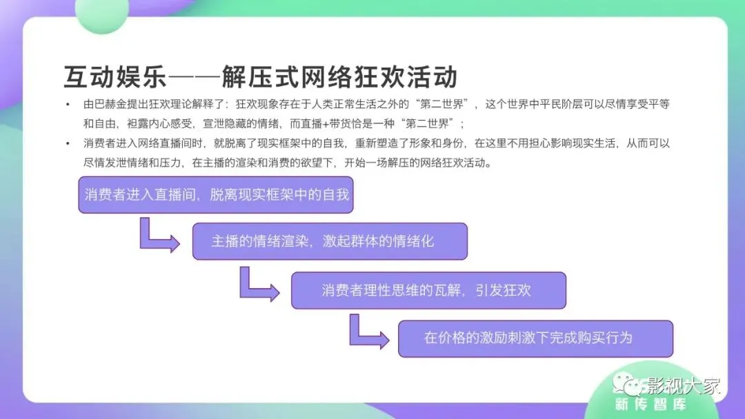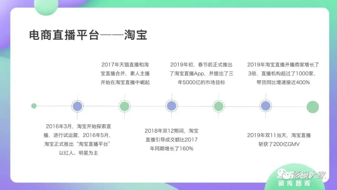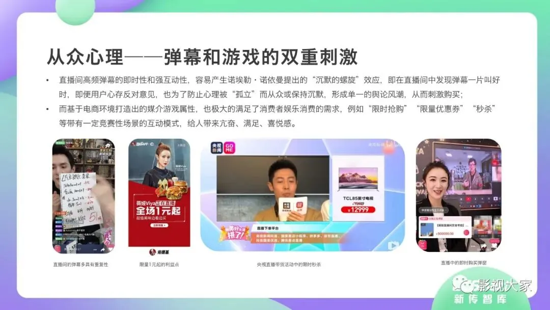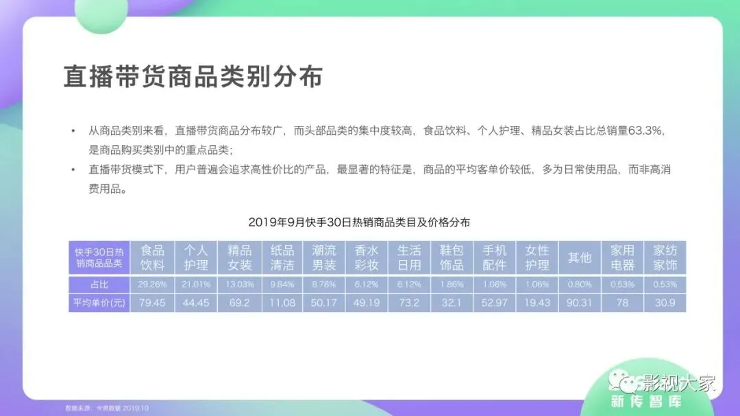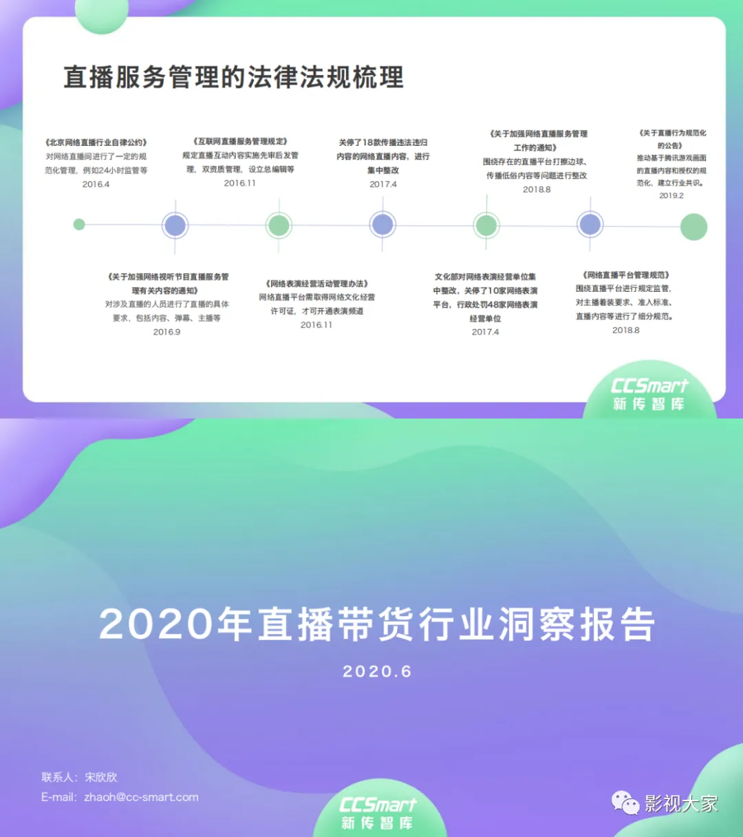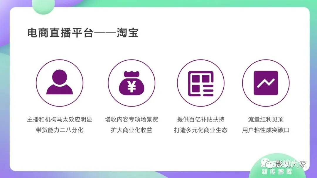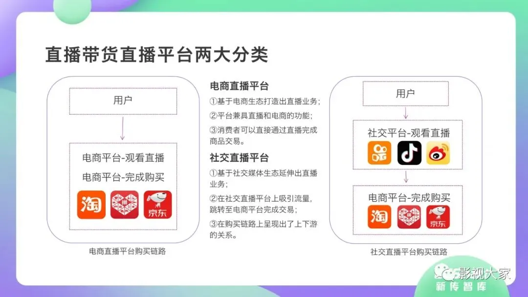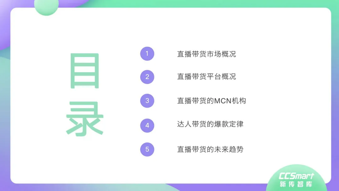 近日,CC-Smart新传智库出品的《2020年直播带货行业洞察报告》重磅发布!本次,CC-Smart新传智库汇聚清华大学、南开大学、中国传媒大学、澳门科技大学等一流高校顶尖专家从研究设计到研究成果制定全流程高端指引。报告整体分为五个部分,涵盖直播带货市场概况、平台概况、MCN机构、达人带货的爆款定律、未来趋势等,纵览直播带货的整体现状,围绕直播带货全产业链进行细分解析。旨在为行业参与主体提供建设性参照,引领相对健康的直播带货生态!本次,《2020年直播带货行业洞察报告》出品方CC-Smart新传智库,聘请清华大学新闻与传播学院副教授、博士生导师司若教授,南开大学传播学系主任陈鹏教授,中国传媒大学新闻学院副教授、中国社会心理学会传播心理专业委员会副秘书长陈锐教授等业内权威专家作为高端顾问,全面指导《2020年直播带货行业洞察报告》的整体研究。作为专注于影视全产业链服务的高端智库平台,新传智库在2016-2019年连续出版影视及文旅蓝皮书系列,并频频获奖!相继推出《中国电视剧发展风向标报告》《中国电视/网络剧产业报告(2020)》《2020中国大学生娱乐形态调研报告》等高质量行业报告,为影视行业风险评估与管控、舆情监测与市场研究提供专业化订制服务,在学界和业界均产生广泛影响力。《2020年直播带货行业洞察报告》采用PEST分析法,从经济环境、政策环境、技术环境、市场环境、社会环境等五个维度宏观梳理直播带货的缘起与“蝶变”。微观注视新冠疫情背景下,全民居家防疫的困境之际,人们排忧解虑的集体选择刺激直播带货体量爆发式增长,“口红效应”持续溢出。实时监测直播带货的热点现象,解析兼具可观赏趣味性和日常有用性的直播带货随之走热的原因。在近几个月研究周期内,新传智库研究团队定量分析直播带货案例,定性分析中外文献及行业文章,汲取“拟剧理论”、“使用与满足理论”、“两极传播理论”、“长尾理论”、“狂欢理论”、“价格感知理论”等覆盖传播学、经济学、文化研究理论精髓,紧扣直播带货行业发展前端,以易于大众接受的话术深入浅出地阐释直播带货高度市场化的多维积淀,前沿展望直播带货的未来走向,匹配泛在读者的需求。