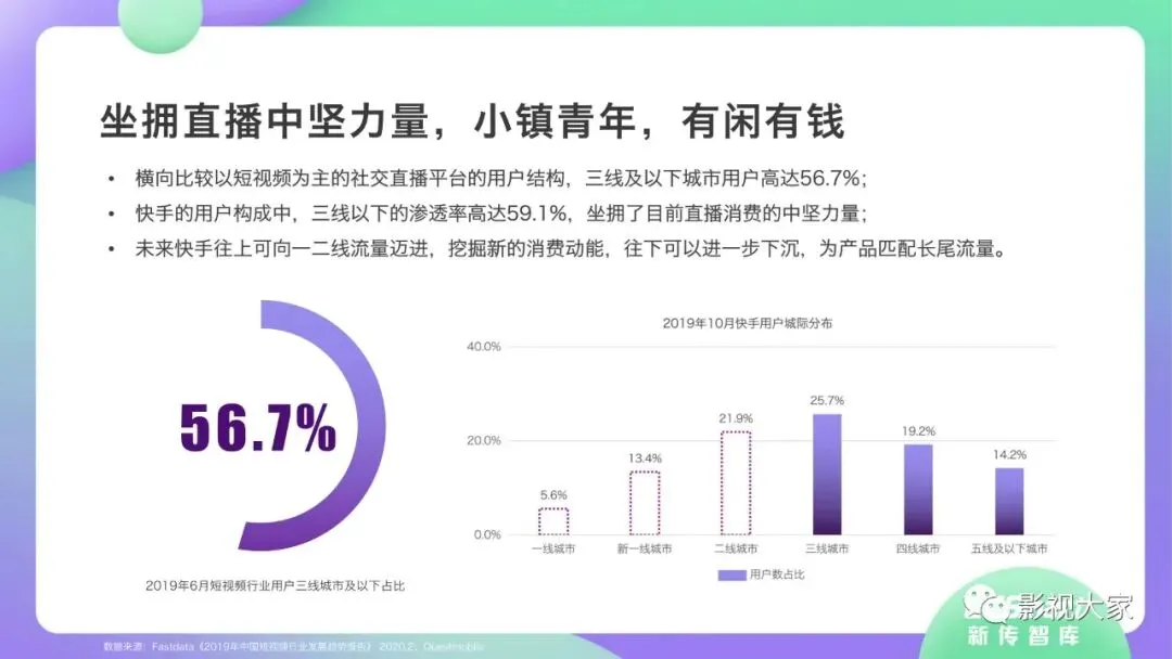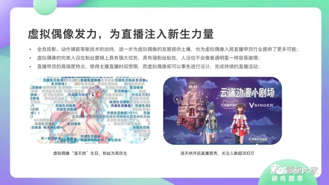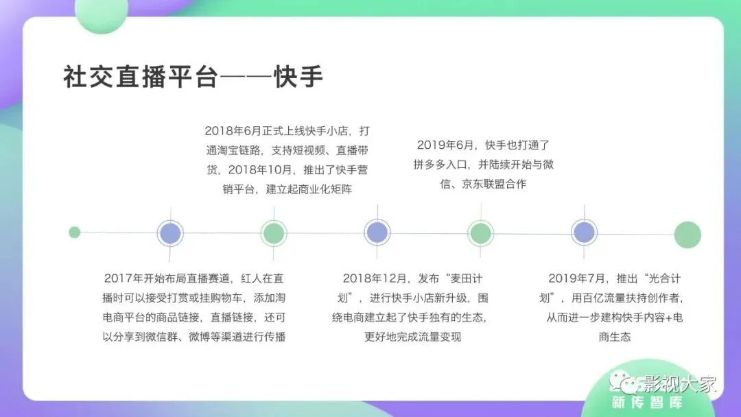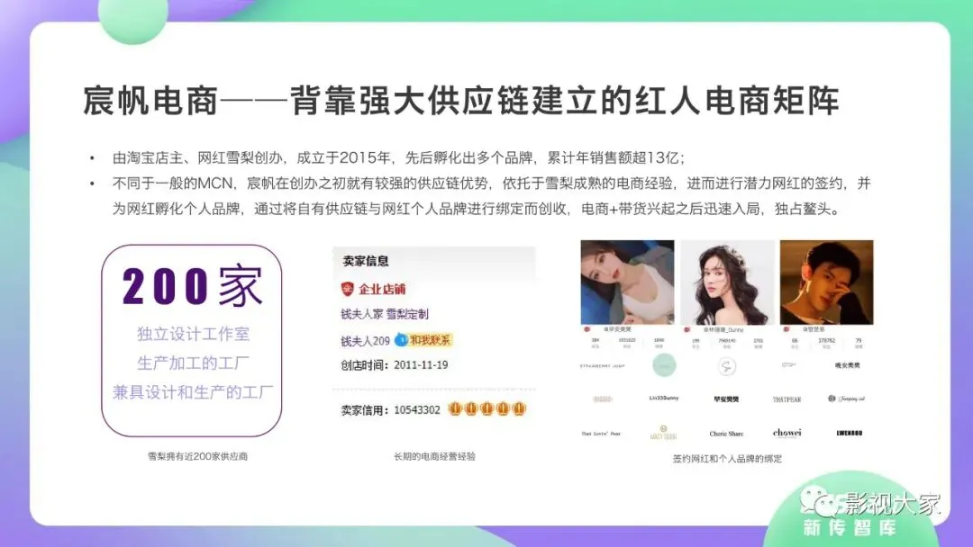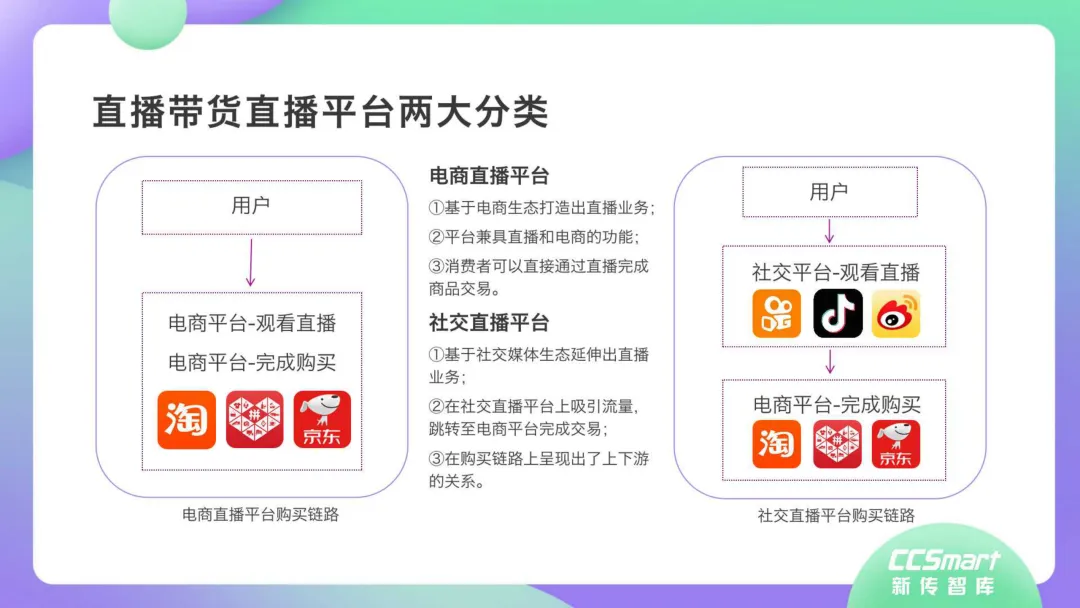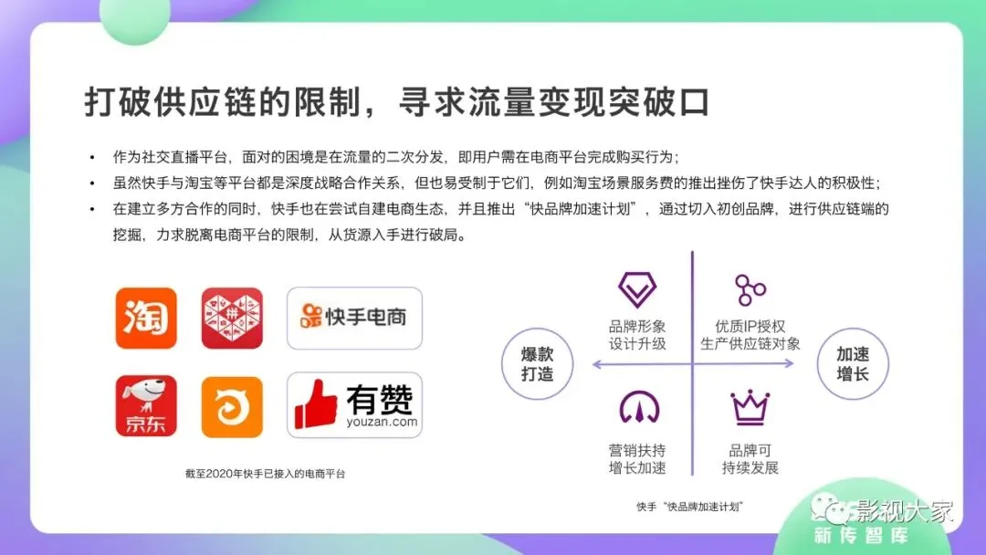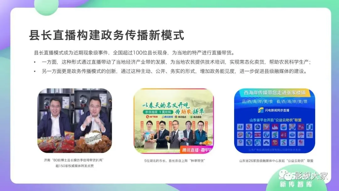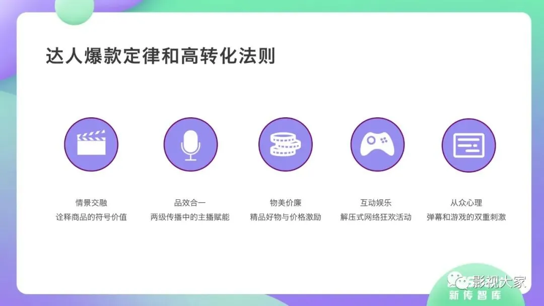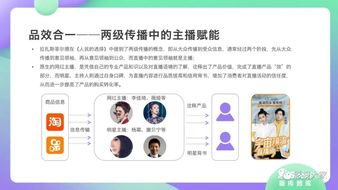 近日,CC-Smart新传智库出品的《2020年直播带货行业洞察报告》重磅发布!本次,CC-Smart新传智库汇聚清华大学、南开大学、中国传媒大学、澳门科技大学等一流高校顶尖专家从研究设计到研究成果制定全流程高端指引。报告整体分为五个部分,涵盖直播带货市场概况、平台概况、MCN机构、达人带货的爆款定律、未来趋势等,纵览直播带货的整体现状,围绕直播带货全产业链进行细分解析。旨在为行业参与主体提供建设性参照,引领相对健康的直播带货生态!本次,《2020年直播带货行业洞察报告》出品方CC-Smart新传智库,聘请清华大学新闻与传播学院副教授、博士生导师司若教授,南开大学传播学系主任陈鹏教授,中国传媒大学新闻学院副教授、中国社会心理学会传播心理专业委员会副秘书长陈锐教授等业内权威专家作为高端顾问,全面指导《2020年直播带货行业洞察报告》的整体研究。作为专注于影视全产业链服务的高端智库平台,新传智库在2016-2019年连续出版影视及文旅蓝皮书系列,并频频获奖!相继推出《中国电视剧发展风向标报告》《中国电视/网络剧产业报告(2020)》《2020中国大学生娱乐形态调研报告》等高质量行业报告,为影视行业风险评估与管控、舆情监测与市场研究提供专业化订制服务,在学界和业界均产生广泛影响力。《2020年直播带货行业洞察报告》采用PEST分析法,从经济环境、政策环境、技术环境、市场环境、社会环境等五个维度宏观梳理直播带货的缘起与“蝶变”。微观注视新冠疫情背景下,全民居家防疫的困境之际,人们排忧解虑的集体选择刺激直播带货体量爆发式增长,“口红效应”持续溢出。实时监测直播带货的热点现象,解析兼具可观赏趣味性和日常有用性的直播带货随之走热的原因。在近几个月研究周期内,新传智库研究团队定量分析直播带货案例,定性分析中外文献及行业文章,汲取“拟剧理论”、“使用与满足理论”、“两极传播理论”、“长尾理论”、“狂欢理论”、“价格感知理论”等覆盖传播学、经济学、文化研究理论精髓,紧扣直播带货行业发展前端,以易于大众接受的话术深入浅出地阐释直播带货高度市场化的多维积淀,前沿展望直播带货的未来走向,匹配泛在读者的需求。