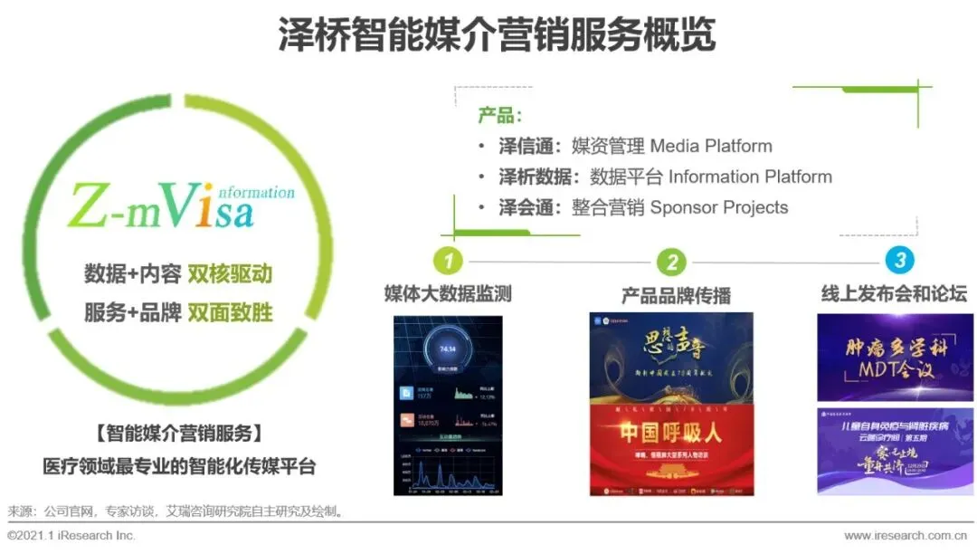 4、泽桥发展评估:1)市场定位精准,准确把握住了市场需求;2)媒体代理业务经过一段时间发展后,及时瞄准聚焦医疗行业的产品研发路线,转型敏捷;3)该阶段让企业自身医疗属性增强,为后续转型升级打下基础。