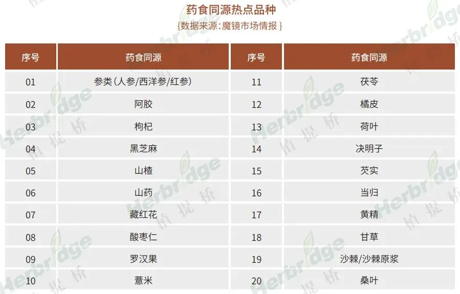 在需求与政策的双轮驱动下,药食同源健康产品迎来了“后疫情时代”,市场显现出一片蓝海。那么,以药食同源为基础开发的功能食品/保健食品中,有哪些热点原料?又有哪些未来值得关注的潜力原料?