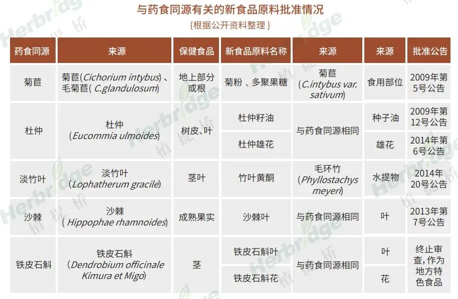除了目前热点与潜力原料外,还有很多新食品原料也与药食同源有关。