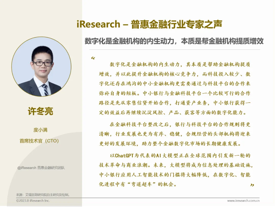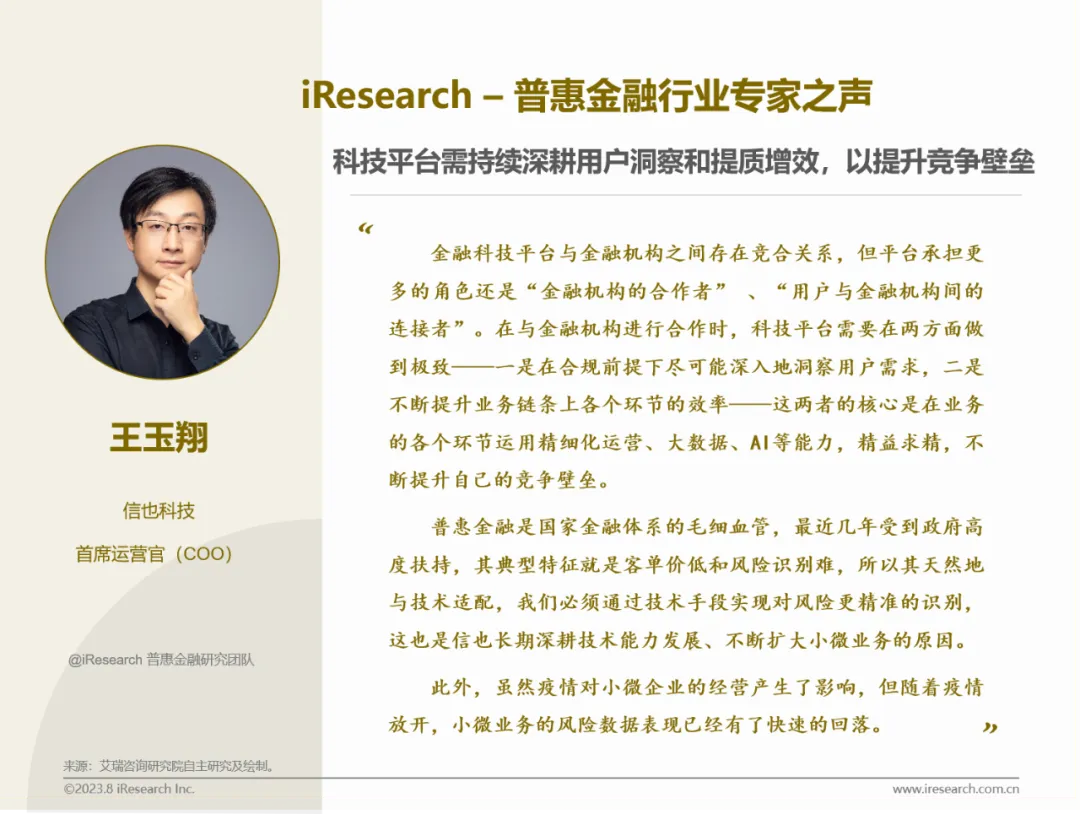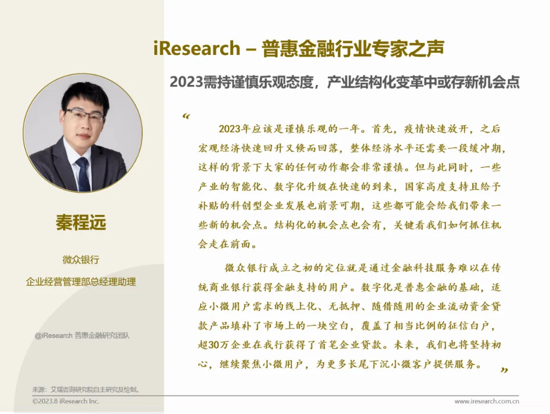 2023年5月,艾瑞咨询普惠金融研究团队启动「iResearch – 普惠金融行业专家之声」板块征集活动,面向普惠金融行业的参与者与关注者发出诚挚访谈邀请。