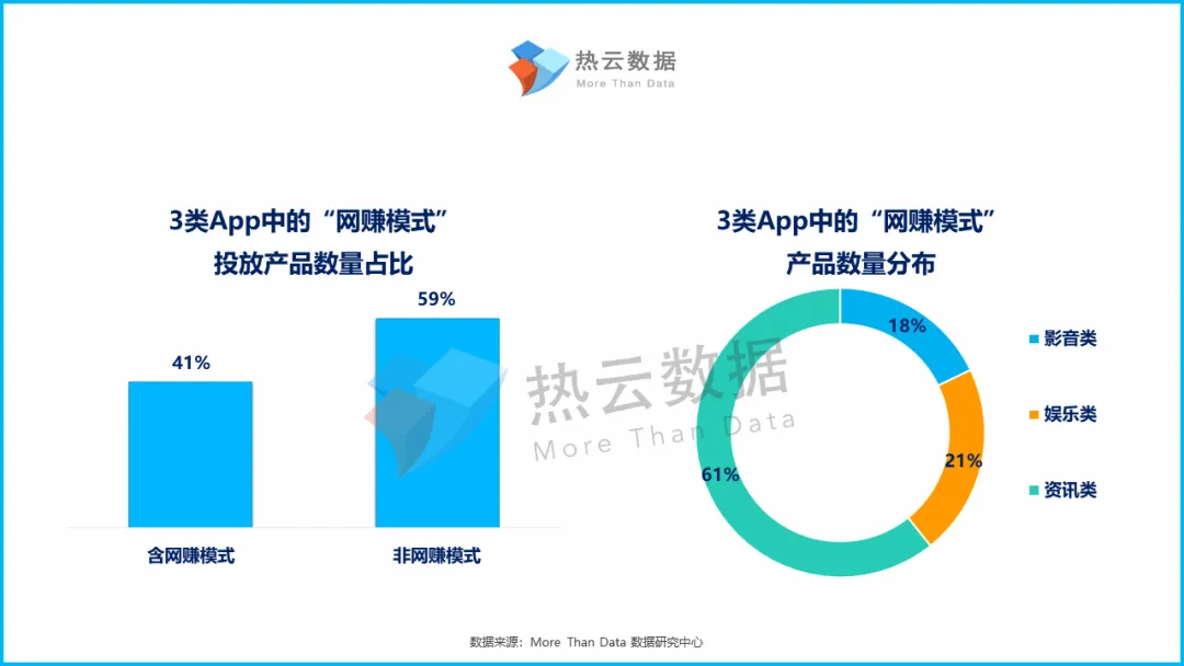 据腾讯安全数据显示,自2018年以来,网赚模式App通过补贴、红包、抽奖等裂变获客模式,导致用户数量大幅上升,影响到的用户数高达2.5亿。但伴随大量网赚群体参与刷量任务以及大量相关黑色产业链涌入,广告主投放的广告效果失真程度越来越高。然而,根据热云数据监测,2019上半年泛娱乐3类App中有超过4成的App仍是定位于网赚模式的。其中,资讯类App是上述3类App中占比最高的,比例达到6成;影音类最低但仍有接近2成的比例。