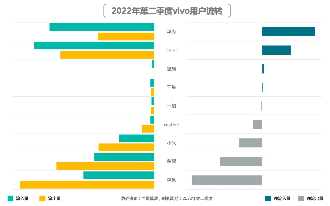 即使无新机加持,苹果依然连续第三季度成为国内市场用户净增量最多的品牌。而苹果新机的即将发布,势必会在第三季度对整个国内手机行业带来巨大冲击,品牌间的用户流转格局的短暂稳定也将被打破。对于国产品牌而言,仅有荣耀、小米、realme保持着用户净增长的状态。在缺乏产品供应的情况下,一方面新用户很难获取,另一方面老用户又很难留存,华为已经成为各个品牌主要的新增用户来源。OPPO与vivo作为老牌竞争“CP”,相较于上季度竞争态势有所转变。在第一季度中,vivo对OPPO呈现出用户流失状态,而在本季度中,vivo成功从OPPO获取了大量新增用户。