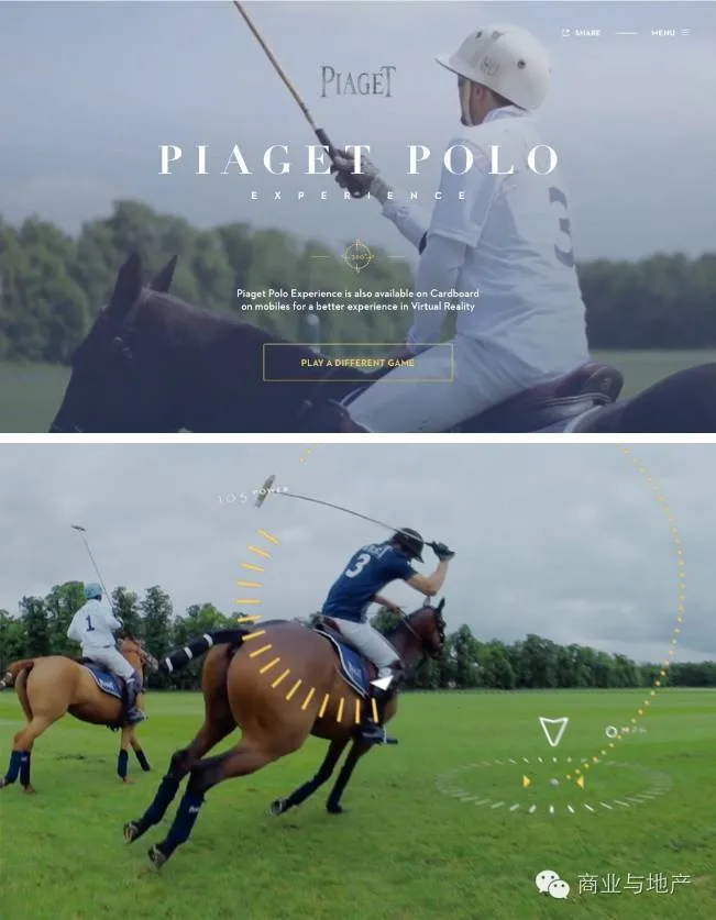 今年7月,瑞士的高级腕表珠宝制造商Piaget与内容生产商 Unit9合作推出360°视频VR体验。Piaget一直是马球比赛的赞助商,此次更是推出VR马球体验,意在推广最新的Polo S系列运动腕表。Piaget在精品店中提供这项体验,以此娱乐消费者。消费者可以带上Google Cardboard头盔,以马球运动员的视角置身马球比赛当中。