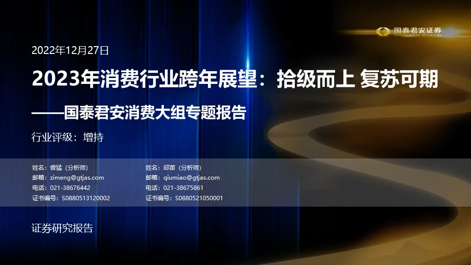 由于报告篇幅较长(56页),本文仅展示核心观点,欢迎联系国君消费大组訾猛(zimeng@gtjas.com)/邱苗(qiumiao@gtjas.com)/对口销售获取完整版资料。