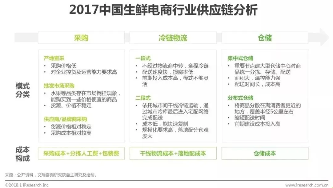 供应链能力是生鲜电商企业降低成本、提高效率、保障商品优质稳定的关键。生鲜保质期短、易损耗的特征使得冷链物流在生鲜的运输和配送中尤为重要,物流成本在生鲜电商的成本结构中占比巨大。随着行业的发展,众多生鲜电商平台开始加码生鲜供应链建设,深入产业链。