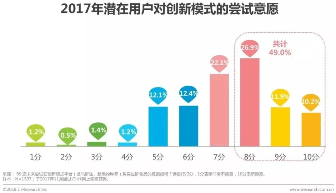 对创新模式的尝试意愿在8分及以上的用户占比接近一半
