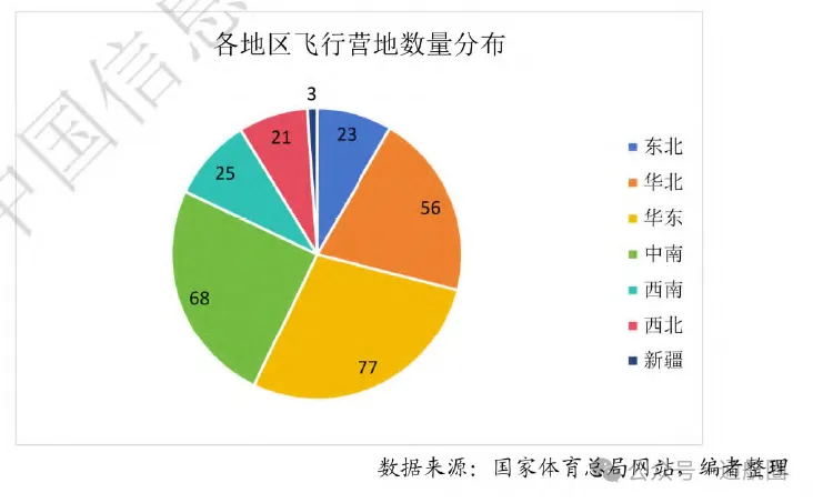自2015年12月起,中国航空运动协会先后公布的五批273家航空飞行营地。华东地区77家,中南地区68家,华北地区56家,西南地区 25 家,东北地区23家,西北地区21家,新疆3家。(不包括校园航空飞行营地)