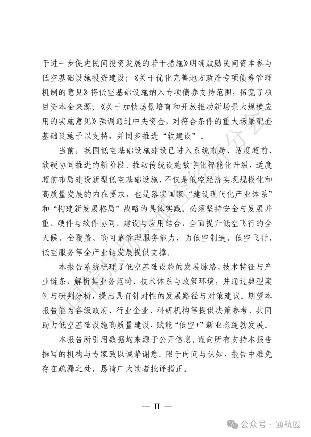 该报告共分八章内容,立足于服务国家战略和产业发展全局,系统梳理了低空基础设施的发展脉络、技术特征与产业链条,深入解析其业务范畴、技术体系与政策环境,并通过典型案例与前瞻研判,提出了具有针对性的发展路径与对策建议。报告指出,低空经济作为新质生产力的重要组成部分,已成为推动经济结构优化升级、塑造高质量发展新动能的关键领域。