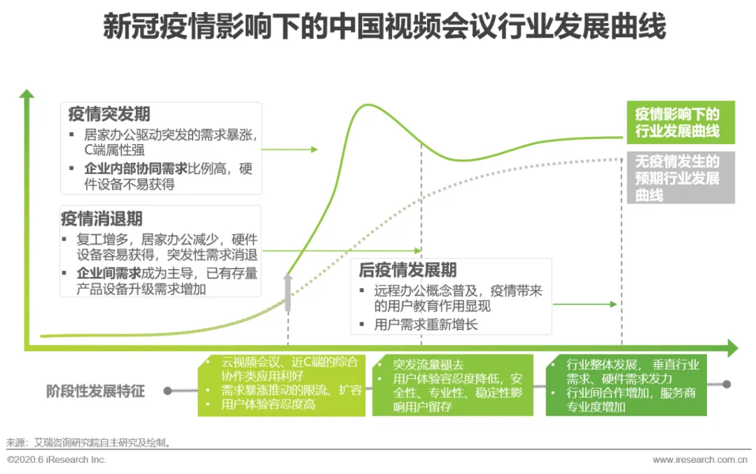 2)疫情消退期,由突发期带来的非刚需流量褪去,留存用户因对视频会议专业性、安全性的容忍度降低,将大范围转用专业的视频会议系统,推动硬件设备与云产品升级;