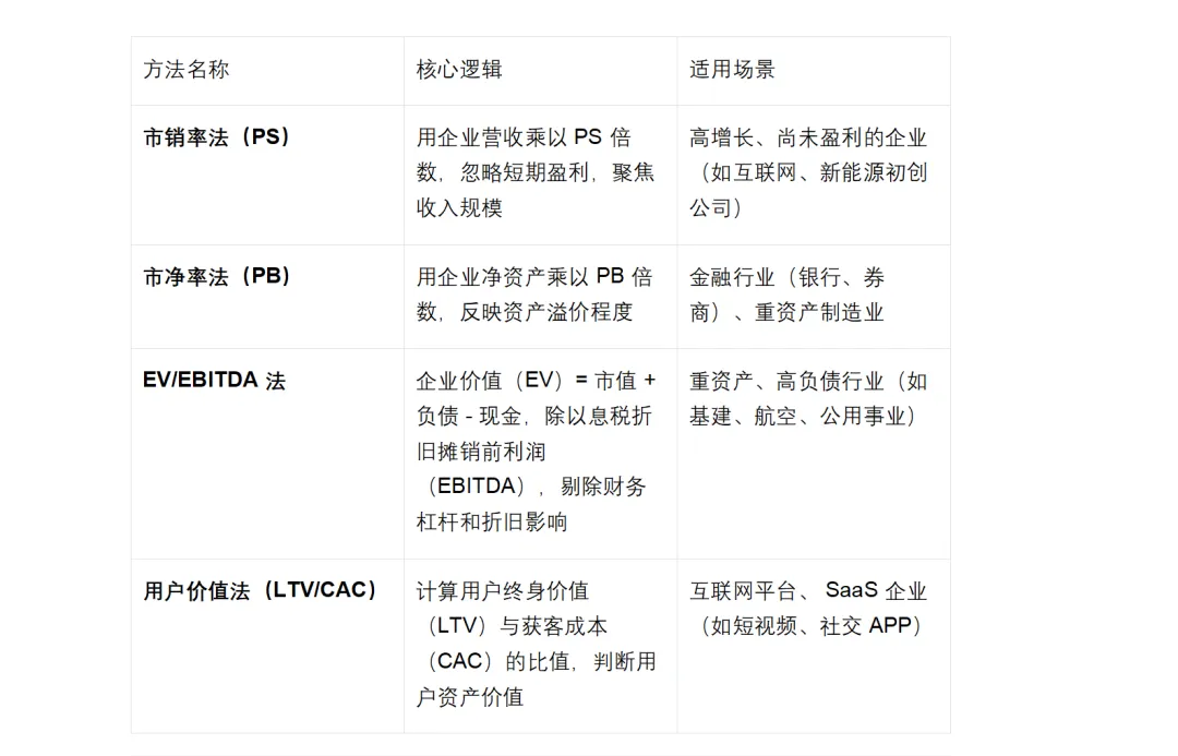 除三大核心体系外,部分行业或阶段有专属估值方法。