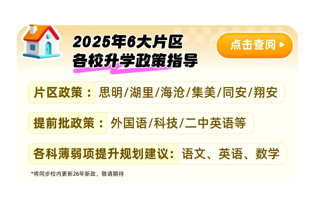 持续追踪厦门升学动态,梳理 2025年六大片区及各热门学校的升学政策要点。