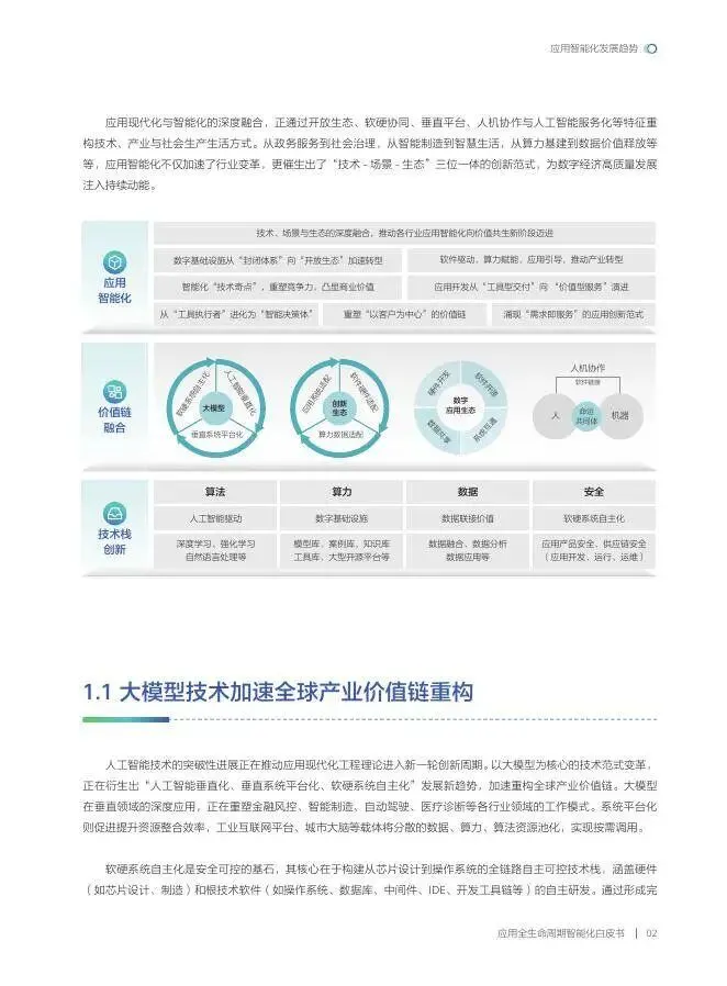 白皮书由应用现代化产业联盟等机构编写,系统阐述了应用全生命周期智能化的框架、技术及实现路径,旨在助力企业应对智能化转型挑战。