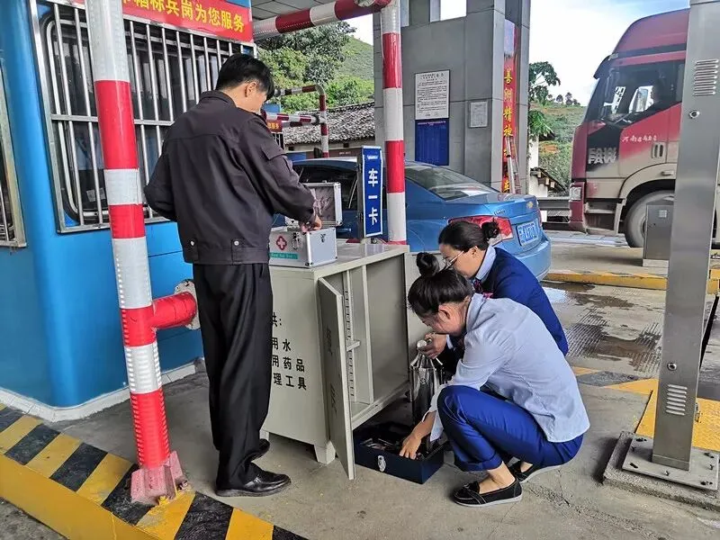 近日,保山管理处蒲缥收费站在收费岗亭设置便民服务台,为过往司乘提供防暑用品,为广大司乘人员高温天气安全行车提供服务。