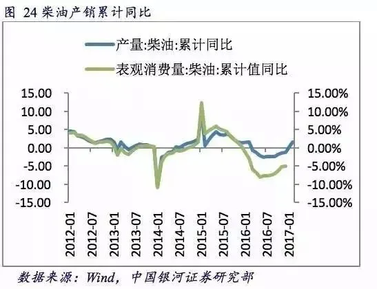 鉴于过去几年工程机械销量偏低,今年工程机械的销量的升高也可能与更新换代的需求释放有关,而非完全是由于经济新增需求所拉动。与工程机械高度相关的柴油产销今年回升速度并非特别明显,这从一定程度上表明当前工程机械销量大增部分源于设备的更新换代,而不完全是由于新增需求所引致。