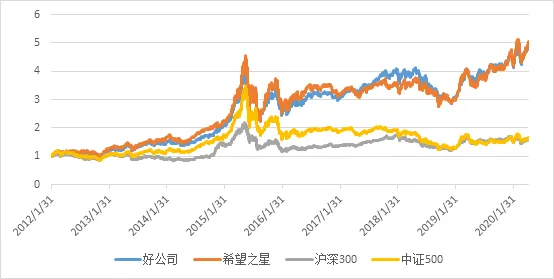 朝阳永续基于一致预期数据和上市公司财报数据,对上市公司每年四个季度财报数据进行是否符合市场一致预期的鉴定。长期以来,那些业绩一直能符合或超出市场预期的公司,其往往能取得比较明显的超额收益。基于这个理论,我们将长期业绩符合预期或超预期的公司定义为“好公司”,短期业绩符合预期或超预期的公司定义为“希望之星”,并对这两类公司进行了一系列的研究。