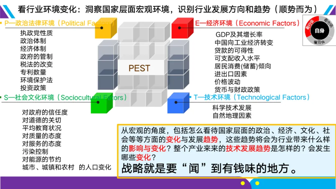 华为从PEST模型入手,洞察政治、经济、社会、技术的趋势。