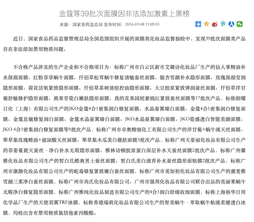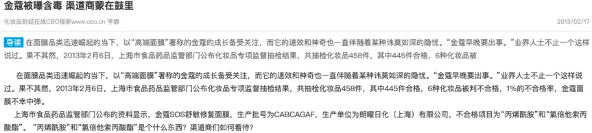 以前一个品牌叫做金蔻,做偏功效性的舒敏产品里面就各种放氯倍他索,被采访后虚心认错说立即销毁甚至说没有流向市场,但是下次查它依然榜上有名,连续好几次,跨度长达三五年,请问这是巧合吗?