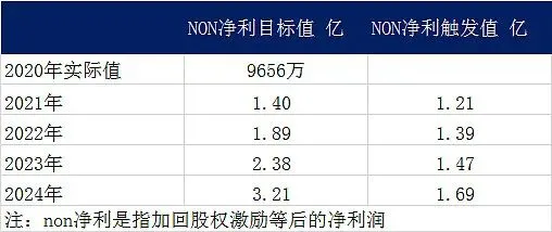 。其他部分收入占比还不大,来简单看一下公司股权激励的业绩标准线