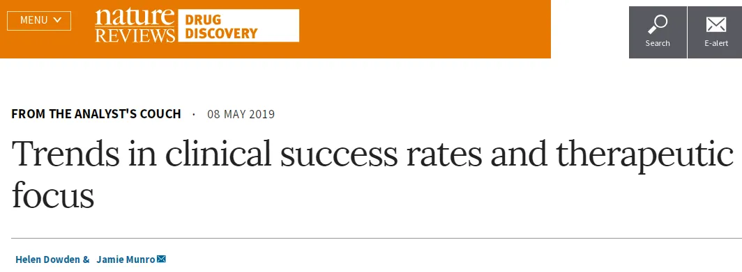 创新药的开发一直是一个风险很高的过程。我们经常听到的一个说法是从临床开发到进入市场,它们成功的几率只有不到10%。然而,新药临床研发的成功率已经开始出现可喜的改变,根据科睿唯安(Clarivate Analytics)旗下的CMR国际研究中心(CMR International)在Nature Reviews Drug Discovery上发表的一篇报告,临床3期产品上市的成功率在过去10年里显著提升!