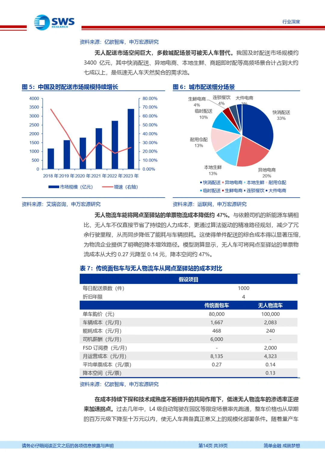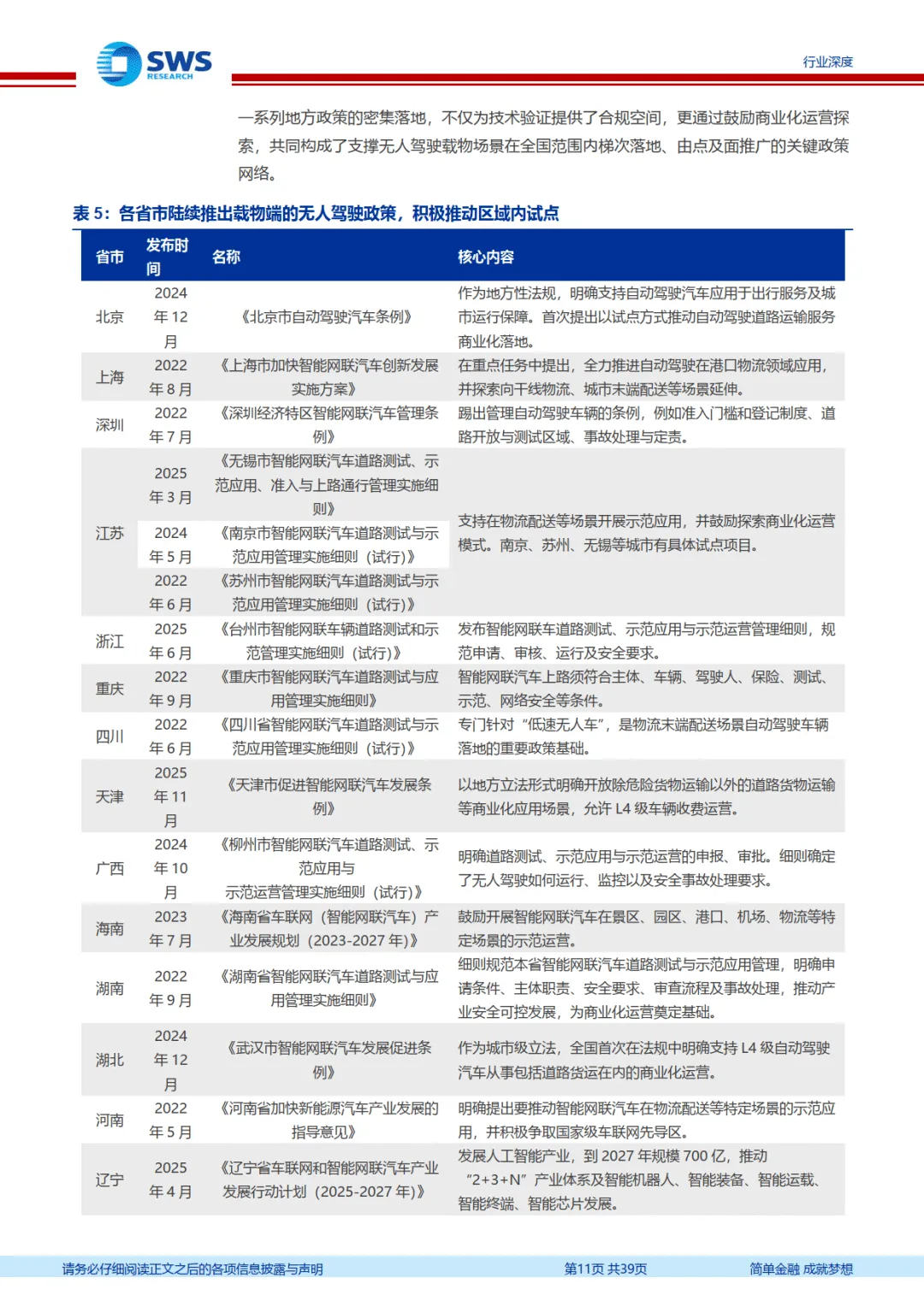 报告聚焦无人载物行业发展现状与趋势,围绕技术政策驱动、细分场景进展、市场格局及风险提示展开分析,核心要点如下: