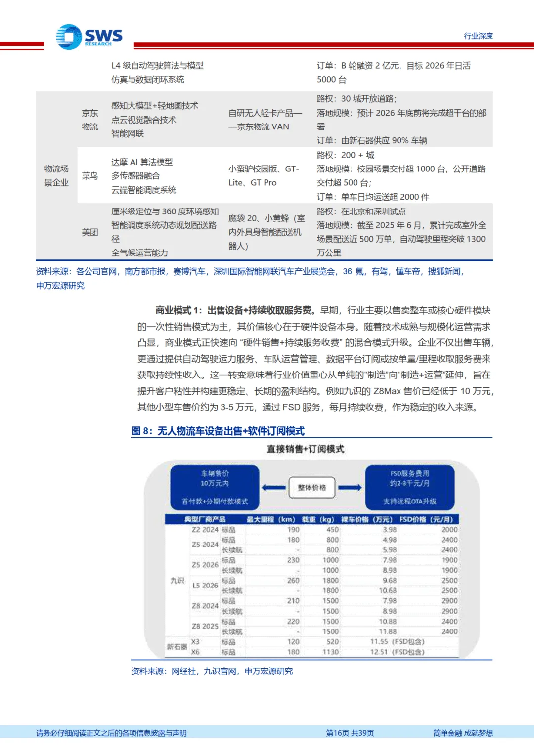 市场竞争格局呈现场景壁垒特征,头部企业优势稳固。各细分赛道玩家重合度低,环境适配性构筑核心竞争壁垒。头部企业通过积累专有数据、工艺知识及生态资源,构建起难以复制的技术护城河,在特定场景中实现规模化运营与盈利。商业模式不断创新,形成设备出售 + 软件订阅、资产租赁、“运输即服务” 等多元模式,推动行业从硬件制造向 “制造 + 运营” 延伸。