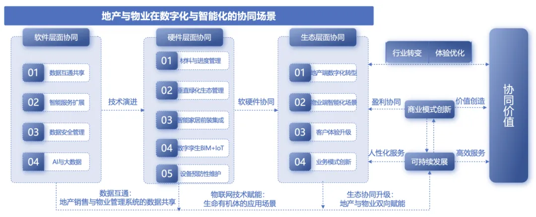 (如城市信息模型CIM、数字孪生底座)为物业智能化提供数据基础,例如郑州、洛阳等智慧城市试点中,地产项目的数字孪生系统直接对接物业运维平台;同时,这些基于业主的行为数据又能为房产提供优化户型设计(如增加储物空间、优化采光布局)等提供参考。