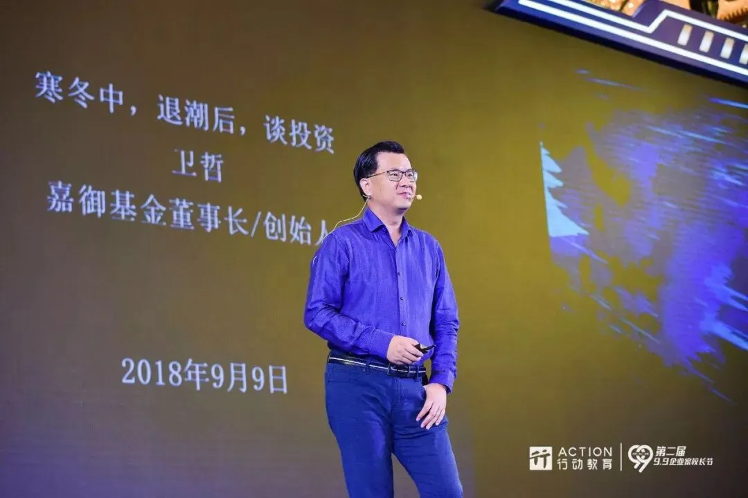 9月9日,嘉御基金董事长、阿里巴巴前CEO卫哲为到场的2000多位创始人、企业家、投资人和媒体展开了“寒冬中退潮后谈投资”的主题分享。以下内容由正和岛将演讲实录整理形成,有更改。
