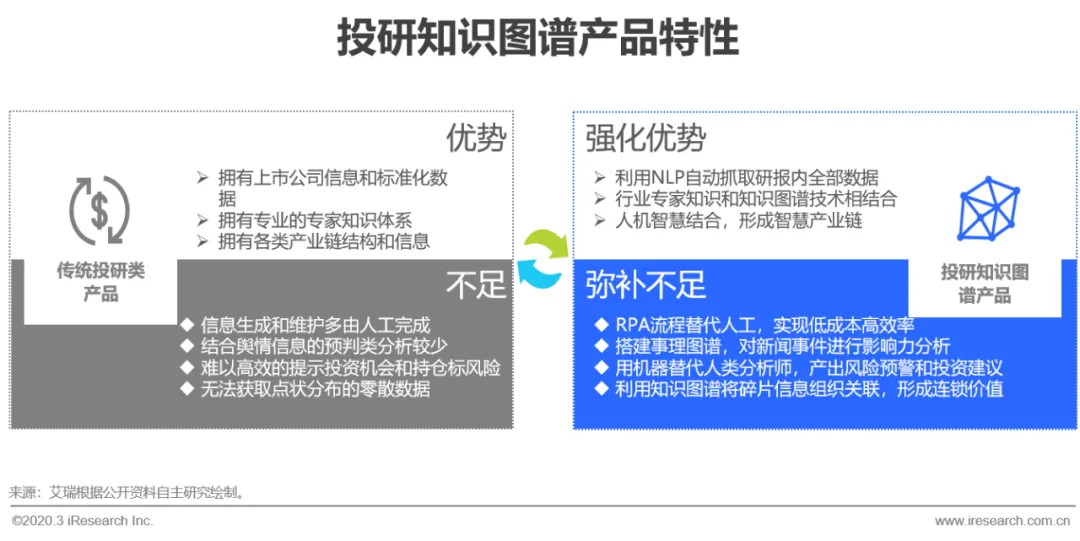 对一级市场或二级市场的投资研究,一直是泛金融领域重要的课题,上市公司或一些重要的标的公司在公开网络中披露了众多如财务数据、定期公告、公司研报等有价值的信息,为投资者行为提供了充分的参考依据。传统投研工作需要分析师通过各种渠道去搜集和判别信息,凭借个人经验对零散的数据进行组织建模,以报告的形式产出趋势观点和数据分析,大部分的物料和时间成本都花费在信息和数据的搜集上,而且成果可控性不高,纵使头部金融数据机构提供了相应的软件产品,但数据的颗粒度和产业链关联性仍难以满足多元需求,这成为了该行业长久存在的痛点。投研知识图谱以公司信息、产业链关联为切入点,利用NLP技术自动抓取关键信息,搭建投研领域知识图谱,将各个行业的发展变化抽象导入数字层面,为知识查询和应用开发提供实现基础。据统计,券商研报中80%的数据指标在传统软件产品中无法查询到,分析师在进入一个新领域时要耗费一周左右的时间搜集类似数据,而利用投研知识图谱可以将其必要劳动时间缩短到一分钟,大幅提高投研效率。除静态领域图谱外,还可以利用时间序列搭建对网络报道、新闻事件进行抓取的事理图谱,两相结合,从行业固有逻辑和实时信息双管齐下,推导事情的发展脉络和趋势走向,为投研机构和投资者清晰的梳理关联脉络,为后续判断投资机会和持仓股票风险等研判类应用提供数据支撑。