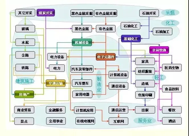 这就是一个国家经济完整的产业链:消费需求是由下游向上游传递,产品供给从上游向下游传递。