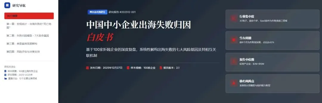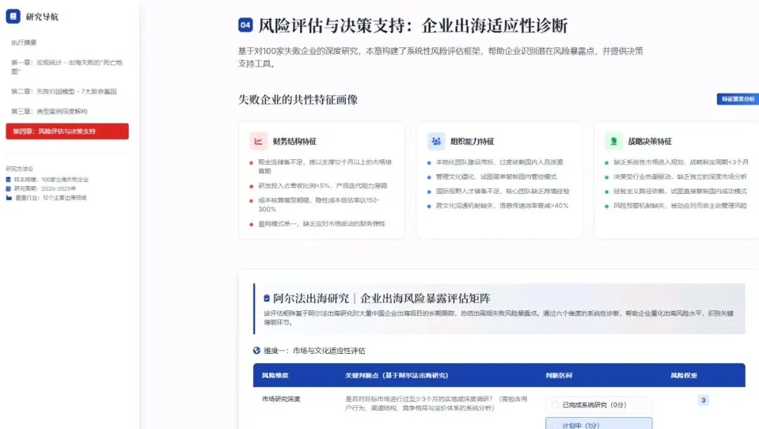 这份《出海失败归因白皮书》,不仅是一份数据汇编,更是一个可交互、可自测的风险诊断系统。