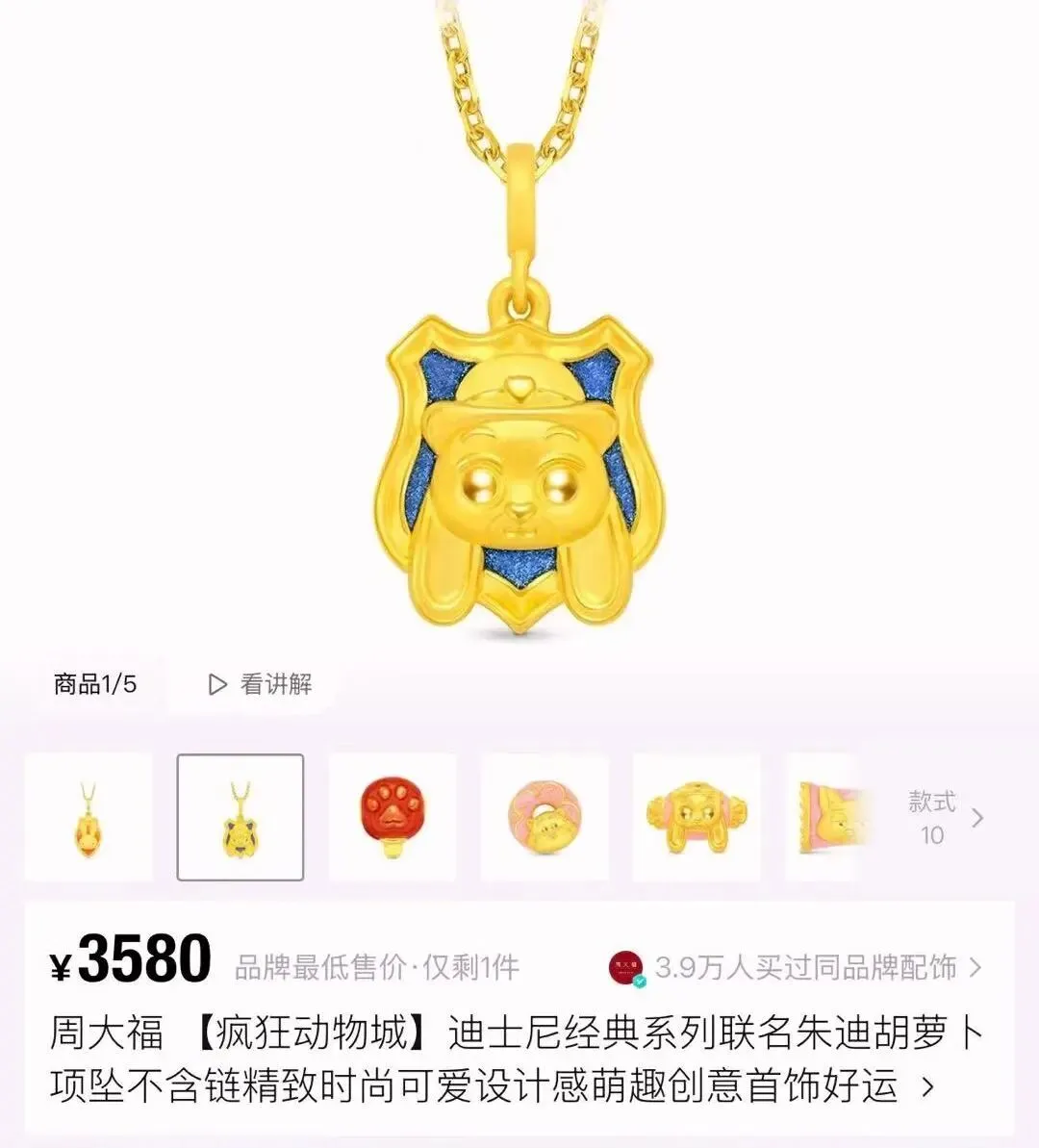 从平价到高端,这场IP消费热潮覆盖了全价格带。名创优品联名录音笔借神还原的电影场景,成为社交媒体上的“网红单品”,得物平台销量超2000份,另有1.8万用户标记“想要”;周大福推出的4个联名“痛金”系列,更是将联名价格上限提升至新高度,朱迪胡萝卜黄金吊坠、尼克朱迪联名转运珠等标价两三千元,仍吸引众多粉丝买单。
