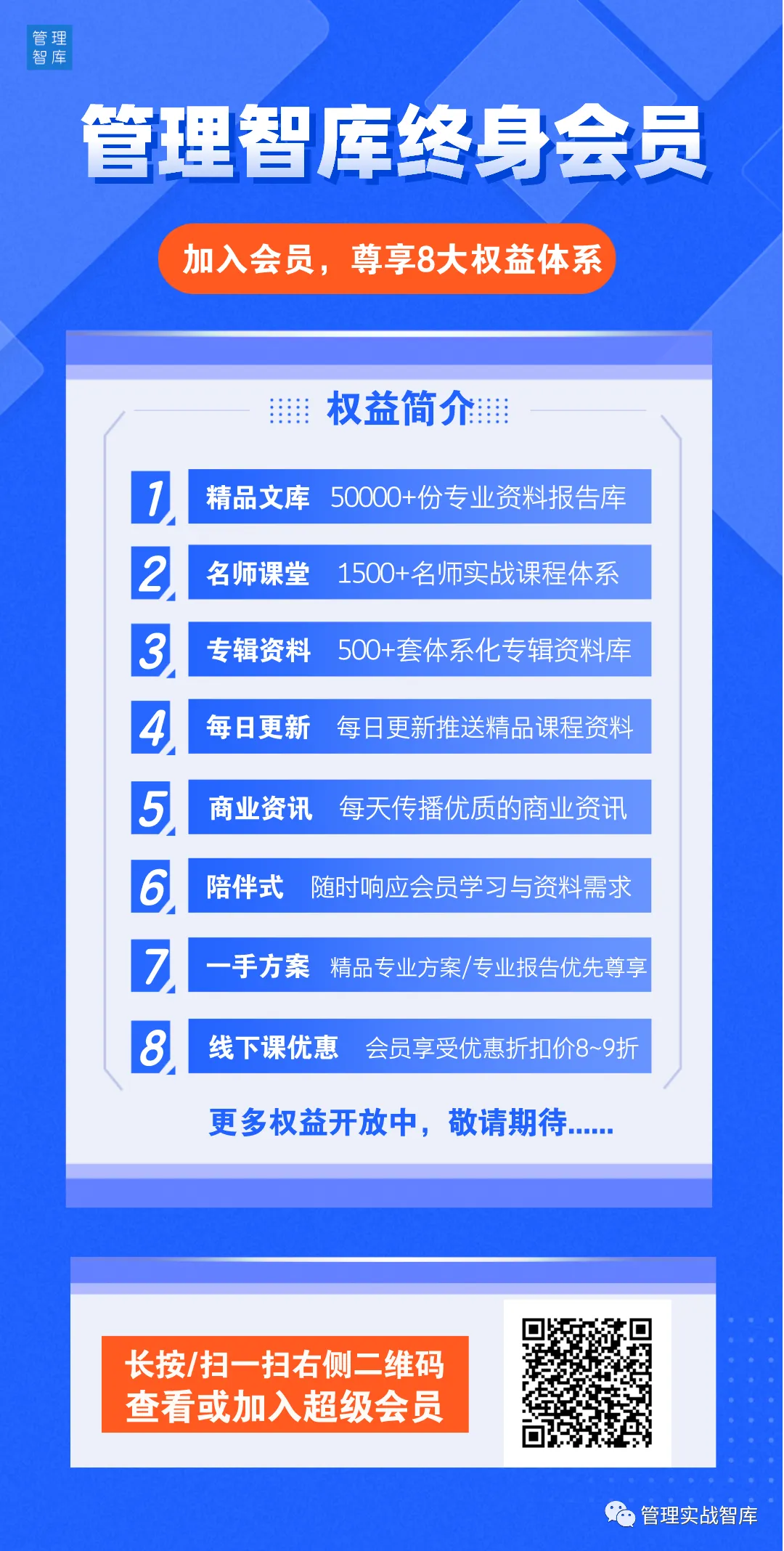 管理智库终身会员平台:致力于打造专属于企业经营管理人士的商业智库和人脉圈。聚焦并持续提供最有价值的专业知识与行业资源,为您的工作成效与个人成长赋能,旨在帮助每一个人都能成为:战略专家、管理专家、行业专家、成功企业家。
