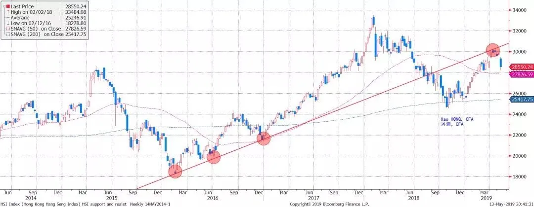 2016年12月到2017年,中国和美国央行重新考虑当时的货币的政策,再到今年的5月份。这是一个巧合吗?不知道。但是做技术图形的人看到这种图,会比较纠结。
