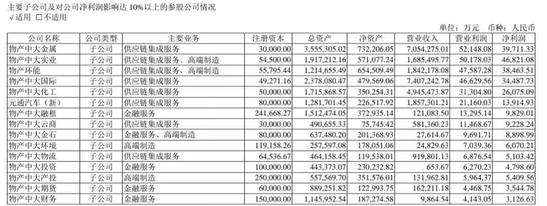 物产中大由于不披露单一业务收入,只能通过它的主要子公司去分析业务,它的供应链业务主要通过中大金属、中大国际和中大化工去经营。